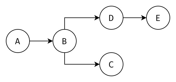 In this example, node A depends on B; B depends on both C and D; D depends on E. Thus, C and E are the independent nodes and will take the initial positions. For the above graph, all the following resolutions are valid: