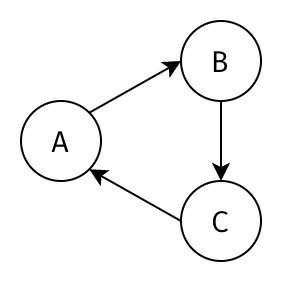 In this example, A depends on B, which depends on C, which depends on A. Here, resolution fails as there is no independent node to be evaluated first.